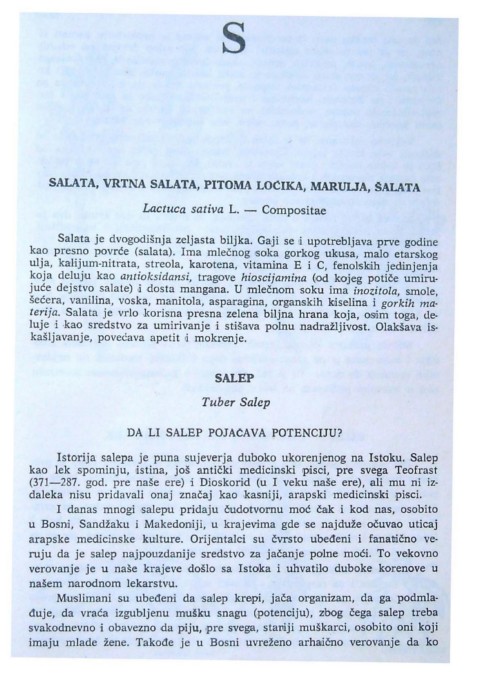 kao presno povrce (salata). Ima mlecnog oSoka gorkog uk'usa, malo etarskog