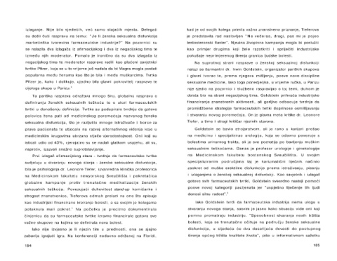 definiranju ženskih seksualnih teškoća te o ulozi farmaceutskih financiranje znanstvenih aktivnosti, ali gorljivo odbacuje tvrdnje da